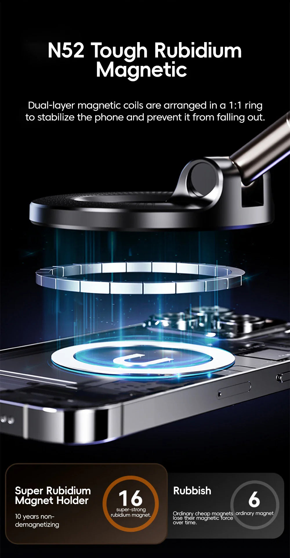 Upgrade your phone mounting experience with the NoEnName_Null 360° Rotation Car Dashboard Holder. Its magnetic suction cup, foldable design, compatibility with all smartphones, and safety features make it a must-have accessory for anyone on the go. Say hello to convenience and goodbye to distractions with this innovative magnetic holder. Order yours today and experience the difference for yourself.